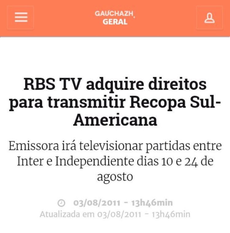 Por que a RBS não exibirá a Recopa do Grêmio @dudamelzer se adquiriu os direitos quando o Inter disputou a mesma competição? Os tempos são de crise, mas a sinalização pro mercado consumidor de tratamento desigual é muito pior em um estado como o nosso.